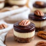 - Step 15: Press a pecan into the center of each ganache-topped cheesecake. Sprinkle with sea salt if desired.