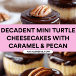 These Mini Turtle Cheesecakes are a delightful combination of creamy cheesecake, rich caramel, and decadent chocolate ganache topped with crunchy pecans. Perfectly portioned and irresistibly delicious, they make a great dessert for any occasion.