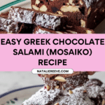 Keywords: Greek chocolate salami, Mosaiko recipe, no bake chocolate dessert, chocolate biscuit salami, Greek desserts