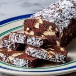 - Serve: Once set, remove the plastic wrap and dust the log(s) generously with powdered sugar to mimic the appearance of salami. Serve in thick slices with coffee or a scoop of vanilla ice cream. Store any leftovers wrapped tightly in the refrigerator.