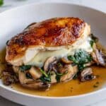 This Mushroom Stuffed Chicken Breast recipe features tender chicken breasts filled with a savory mixture of sautéed mushrooms, garlic, thyme, spinach, and melted mozzarella cheese. The chicken is seared to a golden brown before being baked to juicy perfection. A perfect dish for an elegant dinner or special occasion that combines hearty flavors with healthy ingredients.