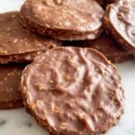 - Form thin rounds: Use a tablespoon to drop dollops of the chocolate mixture onto the parchment paper. Then, spread each dollop into small, thin, round shapes using a spoon or the back of a knife.