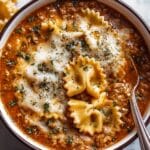 Keywords: One-Pot Lasagna Soup, Italian sausage soup, cheesy lasagna soup, easy lasagna recipe, comfort food soup