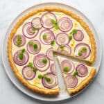 This Onion Cottage Cheese Tart is a delightful blend of sweet caramelized onions and creamy cheese baked to perfection in a flaky crust. It makes a savory snack or a light meal that’s both comforting and elegant.