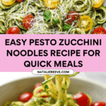 Pesto zucchini noodles are a light and refreshing alternative to traditional pasta dishes. This simple recipe combines fresh zucchini noodles with vibrant basil pesto and juicy cherry tomatoes for a quick, healthy meal.