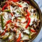 Enjoy the bold flavors of a classic Philly cheesesteak in a quick and easy skillet recipe. Packed with tender sirloin, sautéed peppers, onions, and melted provolone, this dish is perfect for a comforting weeknight meal.