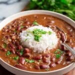 Store leftover red beans and rice in an airtight container in the refrigerator for up to 3 days. Reheat gently on the stove or in the microwave, adding a splash of water to maintain moisture.