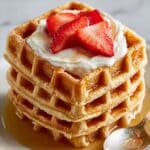 Store leftover waffles in an airtight container in the refrigerator for up to 3 days. To reheat, pop them in a toaster or oven to restore crispness. For longer storage, freeze cooked waffles separated by parchment paper for up to 1 month, and reheat from frozen using a toaster or oven.