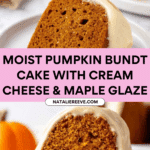 Keywords: pumpkin bundt cake, pumpkin cake, autumn dessert, cream cheese glaze, maple glaze, fall baking, moist pumpkin cake