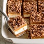 Keywords: pumpkin dessert, layered pumpkin dessert, pecan crust dessert, no-bake pumpkin cheesecake, fall dessert, holiday dessert