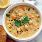 Keywords: chickpea soup, white bean soup, vegetarian soup, quick soup recipe, healthy soup, Mediterranean soup, easy soup, vegetarian, high protein soup