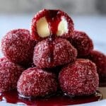These Red Velvet Thumbprint Cookies are soft, mildly chocolate-flavored, and filled with sweet raspberry jam, making them a perfect treat for any occasion. The tender red velvet dough is rolled into bite-sized balls, indented with a thumbprint, and filled with a luscious jam center before baking to golden perfection.