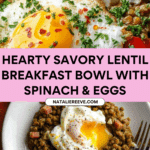This Savory Lentil Breakfast Bowl is a hearty and nourishing way to start your day, combining earthy lentils slow-simmered with aromatic spices and vegetable broth, topped with creamy avocado, sautéed spinach, and a perfectly cooked egg. Enhanced by optional feta cheese and fresh herbs, this dish balances rich, smoky, and fresh flavors for a wholesome breakfast that’s both comforting and nutritious.