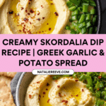 Skordalia is a traditional Greek garlic and potato dip that’s creamy, flavorful, and wonderfully versatile. Perfect as a snack or a side, this dip combines tender potatoes with bright lemon, pungent garlic, and rich olive oil for a deliciously smooth spread.