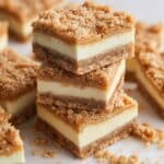 These Snickerdoodle Cheesecake Bars combine the nostalgic cinnamon-sugar flavors of classic snickerdoodle cookies with creamy cheesecake and a crumbly streusel topping. With a buttery, cinnamon-spiced crust and a luscious cream cheese layer, these bars are baked to golden perfection and chilled for a firm but tender texture, making them an irresistible dessert for any occasion.