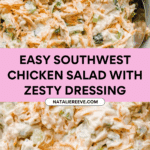 This Southwest Chicken Salad is a flavorful and creamy dish perfect for a light lunch or a satisfying dinner. It combines tender shredded chicken with zesty green chiles, fresh vegetables, and a tangy, spicy dressing that will awaken your taste buds.