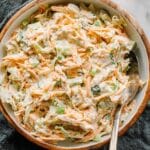 - Step 1: Make the dressing by stirring together the minced garlic, mayonnaise, sour cream, fresh lemon juice, and ground cayenne in a large mixing bowl until well combined.