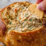 Store any leftover dip in an airtight container in the refrigerator for up to 2 days. Reheat gently in the oven or microwave before serving. The bread bowl is best enjoyed fresh, as it may become soggy when stored.