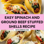These Spinach and Ground Beef Stuffed Shells combine tender jumbo pasta shells with a savory mixture of seasoned ground beef and fresh spinach, all baked in a rich marinara sauce and topped with melted mozzarella and Parmesan cheese. This hearty Italian-inspired casserole is perfect for a comforting family meal.