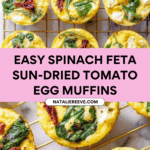 Keywords: spinach egg muffins, feta cheese muffins, sun-dried tomato egg muffins, healthy breakfast muffins, baked egg muffins