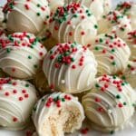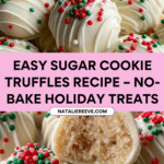 Keywords: sugar cookie truffles, no-bake dessert, holiday treats, cream cheese truffles, vanilla coating, festive sweets