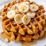 - Serve: Serve waffles warm topped with fresh bananas, extra pecans, and a drizzle of raw honey or maple syrup as desired. Enjoy your wholesome breakfast!