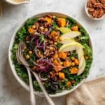 This Sweet Potato Kale Salad with Maple Mustard Dressing is a vibrant, nutrient-packed dish perfect for any season. Roasted sweet potatoes and chickpeas add warmth and texture, complemented by a tangy-sweet dressing and crunchy pecans. It’s a delightful blend of flavors and colors that’s both satisfying and healthy.