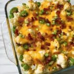 Keywords: jalapeno popper cauliflower casserole, low carb casserole, roasted cauliflower bake, cheesy cauliflower dish, jalapeno bacon casserole