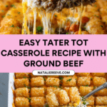 Keywords: tater tot casserole, ground beef casserole, comfort food, easy dinner, cheesy casserole