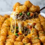 Keywords: tater tot casserole, ground beef casserole, comfort food, easy dinner, cheesy casserole