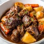 This Ultimate Slow Cooker Pot Roast recipe offers a tender and flavorful chuck roast cooked low and slow with hearty vegetables. Perfectly browned and slow-cooked for hours, the beef becomes melt-in-your-mouth tender, accompanied by soft carrots and Yukon Gold potatoes. A rich, thickened beef broth gravy brings the dish together, making it a comforting and classic meal ideal for family dinners or special occasions.