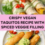 These vegan taquitos, also known as baked veggie flautas, are a delicious and crispy plant-based snack or meal. Filled with a savory mix of potatoes, peas, and spices, they offer bold flavors with a satisfying crunch. Perfect for entertaining or a cozy night in.