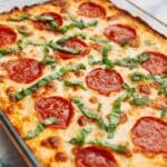 This casserole is lower in carbs compared to traditional pizza, thanks to the zucchini crust instead of dough. It’s a great option for those reducing carbohydrate intake.